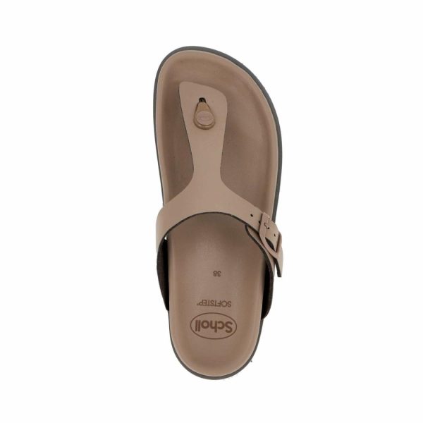 La ligne over de Scholl’s en cuir synthétique est également dessinée sur ce modèle de tongs.